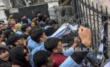 REPUBLIKA.CO.ID,BANDUNG -- Mahasiswa dari berbagai perguruan tinggi melakukan aksi di depan Gedung DPRD Provinsi Jawa Barat, Jalan Diponegoro, Kota Bandung, Kamis (15/9/2022).