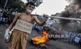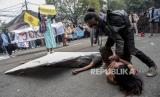 Mahasiswa dari berbagai perguruan tinggi melakukan teatrikal saat aksi di depan Gedung DPRD Provinsi Jawa Barat, Jalan Diponegoro, Kota Bandung, Kamis (15/9/2022). Dalam aksi tersebut mereka menolak keputusan pemerintah menaikkan harga bahan bakar minyak (BBM) di tengah beban rakyat yang semakin berat akibat pandemi Covid-19 dan naiknya harga kebutuhan pokok. Republika/Abdan Syakura (FOTO : REPUBLIKA/ABDAN SYAKURA)