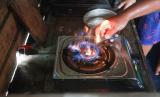 Warga menyalakan api dari kompor menggunakan bahan bakar gas metan dari olahan sampah yang terhubung di rumahnya di area Tempat Pembuangan Sampah Akhir (TPSA) Palangka Raya, Kalimantan Tengah, Kamis (15/9/2022). Dinas Lingkungan Hidup (DLH) Palangka Raya memanfaatkan sampah di TPSA tersebut untuk dijadikan gas metan dengan sistem terpal geomembran yang kemudian dapat digunakan warga untuk kebutuhan rumah tangga secara gratis guna mengurangi penggunaan bahan bakar elpiji. (FOTO : ANTARA/Makna Zaezar)