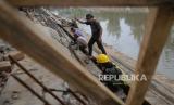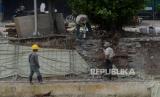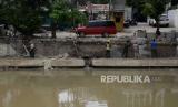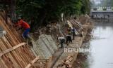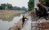REPUBLIKA.CO.ID, JAKARTA -- Pekerja menyelesaikan pembangunan turap Anak Kali Ciliwung di kawasan Pasar Baru, Jakarta, Jumat (16/9/2022). Pembangunan turap tersebut untuk mencegah tanah ambles dan upaya Pemprov DKI Jakarta dalam mengantisipasi banjir.