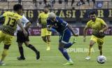 Penyerang Persib Bandung Ciro Henrique Alves Ferreira E Silva (tengah) berusaha melewati hadangan pemain PS Barito Putera dalam pertandingan lanjutan BRI Liga 1 di Stadion Gelora Bandung Lautan Api (GBLA), Gedebage, Kota Bandung, Jumat (16/9/2022). Dalam pertandingan tersebut Persib Bandung berhasil mengalahkan PS Barito Putera dengan skor 5-2. Republika/Abdan Syakura (FOTO : REPUBLIKA/ABDAN SYAKURA)