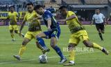 Gelandang Persib Bandung Marc Anthony Klok (tengah) berebut bola dengan pemain PS Barito Putera dalam pertandingan lanjutan BRI Liga 1 di Stadion Gelora Bandung Lautan Api (GBLA), Gedebage, Kota Bandung, Jumat (16/9/2022). Dalam pertandingan tersebut Persib Bandung berhasil mengalahkan PS Barito Putera dengan skor 5-2. Republika/Abdan Syakura (FOTO : REPUBLIKA/ABDAN SYAKURA)