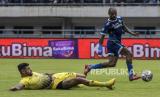 Penyerang Persib Bandung David Aparecido Da Silva (kanan) berebut bola dengan pemain PS Barito Putera dalam pertandingan lanjutan BRI Liga 1 di Stadion Gelora Bandung Lautan Api (GBLA), Gedebage, Kota Bandung, Jumat (16/9/2022). Dalam pertandingan tersebut Persib Bandung berhasil mengalahkan PS Barito Putera dengan skor 5-2. Republika/Abdan Syakura (FOTO : REPUBLIKA/ABDAN SYAKURA)