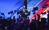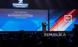 Ketua Umum Partai Demokrat Agus Harimurti Yudhoyono (AHY) menyampaikan pidato kebangsaan pada Rapat Pimpinan Nasional (Rapimnas) Partai Demokrat di Jakarta Convention Center (JCC), Jakarta, Jumat (16/9/2022). Pidato kebangsaan tersebut membahas tentang isu-isu nasional serta strategi Partai Demokrat dalam menghadapi Pemilu 2024 mendatang. Republika/Thoudy Badai (FOTO : Republika/Thoudy Badai)