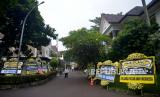 Sejumlah karangan bunga ucapan belasungkawa atas wafatnya Ketua Dewan Pers Azyumardi Azra berada di rumah duka Perumahan Puri Laras 2, Ciputat, Tangsel, Banten, Ahad (18/9/2022). Azyumardi Azra meninggal dunia pada Ahad (18/9/2022) di rumah sakit Kedah, Selangor, Malaysia pukul 12.30 waktu setempat.Republika/Prayogi (FOTO : Republika/Prayogi)