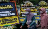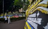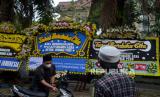 REPUBLIKA.CO.ID,TANGERANG SELATAN -- Sejumlah karangan bunga ucapan belasungkawa atas wafatnya Ketua Dewan Pers Azyumardi Azra berada di rumah duka Perumahan Puri Laras 2, Ciputat, Tangsel, Banten, Ahad (18/9/2022).