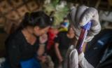 Tenaga kesehatan mengambil sampel dahak dari salah satu warga Suku Baduy di Desa Kanekes, Lebak, Banten, Senin (19/9/2022). Pengambilan sampel darah dan dahak tersebut dilakukan menyusul adanya kasus delapan warga Suku Baduy meninggal dunia akibat penyakit, diantaranya enam orang diduga terkena campak dan dua orang terkena tuberkolosis (TBC). (FOTO : ANTARA/Muhammad Bagus Khoirunas)