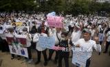 Unjuk rasa tersebut menuntut Presiden Joko Widodo segera menerbitkan Peraturan Presidan (PP) khusus yang mengatur honorer nakes dan non nakes diangkat menjadi aparatur sipil negara.