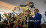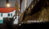 Dalang cilik menghibur penonton pada Festival Dalang Anak Nasional ke-15 di Kota Tua, Jakarta, Kamis (22/9/2022). Festival tersebut melombakan dalang wayang anak-anak berusia 8 hingga 15 tahun dari 9 provinsi yang berlangsung hingga Sabtu (24/9/2022). Republika/Putra M. Akbar (FOTO : Republika/Putra M. Akbar)