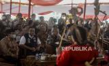 Gubernur DKI Jakarta Anies Baswedan (kanan) memukul gong pada pembukaan Festival Dalang Anak Nasional ke-15 di Kota Tua, Jakarta, Kamis (22/9/2022). Festival tersebut melombakan dalang wayang anak-anak berusia 8 hingga 15 tahun dari 9 provinsi yang berlangsung hingga Sabtu (24/9/2022). Republika/Putra M. Akbar (FOTO : Republika/Putra M. Akbar)
