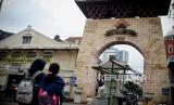 Anak bermain di area pertokoan di kawasan Pasar Baru, Jakarta, Kamis (22/9/2022). Pemprov DKI Jakarta menetapkan kompleks Pasar baru merupakan salah satu kawasan dan Benda Cagar Budaya. Penetapan ini dilakukan setelah melalui proses kajian yang dilakukan Tim Ahli Cagar Budaya (TACB) Provinsi DKI Jakarta dan ditetapkan melalui Keputusan Gubernur. Kawasan tersebut merupakan area perdagangan yang telah berkembang sejak awal abad ke-19. Republika/Thoudy Badai (FOTO : Republika/Thoudy Badai)