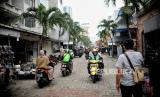 Pengendara melintas di area pertokoan di kawasan Pasar Baru, Jakarta, Kamis (22/9/2022). Pemprov DKI Jakarta menetapkan kompleks Pasar baru merupakan salah satu kawasan dan Benda Cagar Budaya. Penetapan ini dilakukan setelah melalui proses kajian yang dilakukan Tim Ahli Cagar Budaya (TACB) Provinsi DKI Jakarta dan ditetapkan melalui Keputusan Gubernur. Kawasan tersebut merupakan area perdagangan yang telah berkembang sejak awal abad ke-19. Republika/Thoudy Badai (FOTO : Republika/Thoudy Badai)