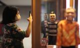 Pengunjung memotret koleksi yang dipamerkan dalam Nostalgia Srimulat di ruang bawah tanah Alun-Alun Surabaya, Jawa Timur, Kamis (22/9/2022). Pameran yang digelar oleh Pemkot Surabaya bekerja sama dengan Museum Gubug Wayang Mojokerto itu berlangsung sampai 30 September 2022. (FOTO : ANTARA/Didik Suhartono)