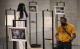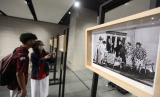 Pengunjung mengamati koleksi yang dipamerkan dalam Nostalgia Srimulat di ruang bawah tanah Alun-Alun Surabaya, Jawa Timur, Kamis (22/9/2022). Pameran yang digelar oleh Pemkot Surabaya bekerja sama dengan Museum Gubug Wayang Mojokerto itu berlangsung sampai 30 September 2022. (FOTO : ANTARA/Didik Suhartono)