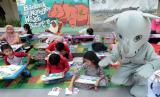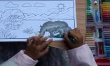 Pelajar tingkat Sekolah Dasar mengikuti lomba melukis dan mewarnai dengan tema badak pada peringatan Hari Badak Sedunia yang diselenggarakan komunitas pecinta lingkungan dan satwa bersama Forum Konservasi Leuser di Banda Aceh, Aceh, Kamis (22/9/2022). Peringatan Hari Badak Sedunia menjadi momentum untuk mengkampanyekan populasi Badak Sumatra (Dicerorhinus sumatrensis) yang semakin langka dan terancam punah akibat perburuan dan penyusutkan hutan karena perambahan secara ilegal. (FOTO : ANTARA/Irwansyah Putra)