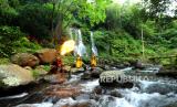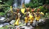 Penari Gandrung menari dengan latar belakang air terjun Jagir di Banyuwangi, Jawa Timur, Kamis (22/09/2022).  Sejumlah seniman tari bersama pengelola wisata mengkolaborasikan unsur seni daerah setempat sebagai pariwisata yang berbasis budaya (Cultural Tourism) untuk menambah daya tarik dan meningkatkan kunjungan wisata.  (FOTO : ANTARA/Budi Candra Setya)