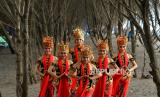 REPUBLIKA.CO.ID, BANYUWANGI -- Penari Gandrung berpose di hutan kota Pantai Cemara, Banyuwangi, Jawa Timur, Kamis (22/09/2022). Sejumlah seniman tari bersama pengelola wisata mengkolaborasikan unsur seni daerah setempat sebagai pariwisata yang berbasis budaya (Cultural Tourism) untuk menambah daya tarik dan meningkatkan kunjungan wisata.