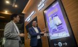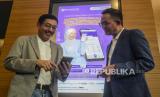REPUBLIKA.CO.ID, JAKARTA -- Bank Muamalat Awaldi berbincang dengan Head of Digital Banking Bank Muamalat Marjuki (kiri) mengenai fitur Gerai Reksa Dana Syariah di Jakarta, Jumat (23/9/2022). Bank Muamalat mencatat minat nasabah terhadap produk investasi terus meningkat dari tahun ke tahun.