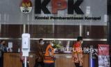 Suasana konferensi pers penahanan tersangka Hakim Agung Sudrajad Dimyati di Gedung Merah Putih KPK, Jakarta, Sabtu (24/9/2022). Dalam konferensi pers tersebut, KPK resmi menahan Hakim Agung Sudrajad Dimyati sebagai tersangka kasus dugaan suap pengurusan perkara di Mahkamah Agung. Dimyati bersama sembilan orang lainnya yang terdiri dari PNS Mahkamah Agung, pengacara dan pihak swasta menjadi tersangka dalam kasus suap pengurusan kasasi pailit Kopersi Simpan Pinjam Intidana. Kasus ini terbongkar lewat operasi tangkap tangan (OTT) yang digelar pada Rabu dan Kamis kemarin. (FOTO : Republika/Prayogi)