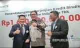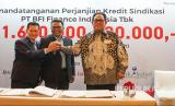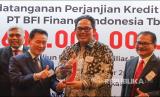 REPUBLIKA.CO.ID, JAKARTA -- Presiden Direktur BFI Finance Indonesia, Francis Lay Sioe Ho, Direktur Utama Bank DKI, Fidri Arnaldy, dan Direktur Komersial dan Kelembagaan Bank DKI Herry Djufraini menandatangani Perjanjian Kredit Sindikasi PT BFI Finance Indonesia Tbk senilai Rp1,6 Triliun di Jakarta (23/09).