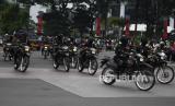 REPUBLIKA.CO.ID, JAKARTA -- Sejumlah personel Brimob Polda Metro Jaya mengendarai sepeda motor saat mengamankan aksi dari Gerakan Nasional Pembela Rakyat (GNPR) mengikuti aksi di Kawasan Patung Kuda Jakarta, Jumat (23/9/2022). Aksi yang diikuti ratusan peserta tersebut mendesak pemerintah menurunkan harga BBM.