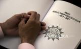 REPUBLIKA.CO.ID,BANDUNG -- Peserta muktamar (muktamirin) membaca draft rencana jihad Persatuan Islam (Persis) 2022-2027 saat sidang komisi pada Muktamar XVI Persatuan Islam di Soreang, Kabupaten Bandung, Ahad (25/9/2022).