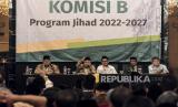 Peserta muktamar (muktamirin) membaca draft rencana jihad Persatuan Islam (Persis) 2022-2027 saat sidang komisi pada Muktamar XVI Persatuan Islam di Soreang, Kabupaten Bandung, Ahad (25/9/2022). Sidang komisi yang merupakan salah satu rangkaian acara Muktamar XVI Persatuan Islam tersebut membahas tentang Qanun Asasi dan Qanun Dakhili, Rencana Jihad serta Bayan atau Rekomendasi Muktamar. (FOTO : REPUBLIKA/ABDAN SYAKURA)