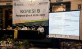 Pimpinan sidang memimpin jalannya sidang komisi pada Muktamar XVI Persatuan Islam di Soreang, Kabupaten Bandung, Ahad (25/9/2022). Sidang komisi yang merupakan salah satu rangkaian acara Muktamar XVI Persatuan Islam tersebut membahas tentang Qanun Asasi dan Qanun Dakhili, Rencana Jihad serta Bayan atau Rekomendasi Muktamar. Republika/Abdan Syakura (FOTO : REPUBLIKA/ABDAN SYAKURA)