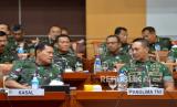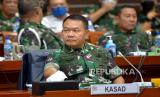 Kepala Staf Angkatan Darat (KSAD) Jenderal TNI Dudung Abdurachman bersiap mengikuti rapat kerja dengan Komisi I DPR di Kompleks Parlemen, Senayan, Jakarta, Senin (26/9/2022). Rapat kerja tersebut beragendakan pembahasan penyesuaian Rencana Kerja dan Anggaran (RKA) Kementerian Pertahanan/TNI TA 2023. Republika/Prayogi (FOTO : Republika/Prayogi)