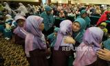 Ketua Umum Persatuan Islam Istri (Persistri) Lia Yuliani medapat ucapan selamat saat penutupan Muktamar XIII Persistri, di Hotel Horison, Kota Bandung, Senin (26/9). Lia Yuliani kembali terpilih sebagai Ketua Umum Persistri masa jihad 2022-2027. Lia meminta doa kepada seluruh anggota agar Persistri senantiasa menjadi organisasi pembawa manfaat dan menjadi sauri tauladan yang lebih baik lagi di masa depan. (FOTO : Edi Yusuf/Republika)