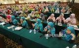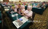 Peserta bertepuk tangan setelah menyelesaikan acara muktamar dengan lancar saat penutupan Muktamar XIII Persatuan Islam Istri (Persistri), di Hotel Horison, Kota Bandung, Senin (26/9). Lia Yuliani kembali terpilih sebagai Ketua Umum Persistri masa jihad 2022-2027. Lia meminta doa kepada seluruh anggota Persistri agar Persistri senantiasa menjadi organisasi pembawa manfaat dan menjadi sauri tauladan yang lebih baik lagi di masa depan. (FOTO : Edi Yusuf/Republika)