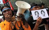 REPUBLIKA.CO.ID,KENDARI -- Mahasiswa berorasi dan memegang poster foto almarhum Randi dan Yusuf saat unjuk rasa mengenang kematian dua mahasiswa tersebut di Mapolda Sulawesi Tenggara, Kendari, Sulawesi Tenggara, Senin (26/9/2022).