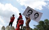 Sejumlah mahasiswa memegang poster foto almarhum Randi dan Yusuf saat unjuk rasa mengenang kematian dua mahasiswa tersebut di Mapolda Sulawesi Tenggara, Kendari, Sulawesi Tenggara, Senin (26/9/2022). Ratusan mahasiswa menggelar unjuk rasa solidaritas untuk mendiang rekan mereka Randi dan Muh Yusuf Kardawi yang meninggal tertembak ketika aksi penolakan RKUHP dan RUU kontroversial lainnya pada September 2019. (FOTO : ANTARA/jojon)