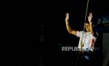 REPUBLIKA.CO.ID,JAKARTA -- Atlet panjat tebing Indonesia Raviandi Ramadhan menyapa penonton usai memanjat tebing pada laga final IFSC Seri Jakarta, di kawasan SCBD, Jakarya, Senin (26/9/2022).