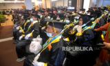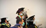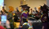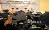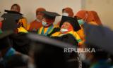 Warga lanjut usia (Lansia) mengikuti wisuda Lansia kelompok Bina Keluarga Lansia (BKL) Sekolah Lansia BKKBN Yogyakarta di Yogyakarta, Selasa (27/8/2022). Sebanyak 300 Lansia dari 4 kabupaten dan 1 kota Daerah Istimewa Yogyakarta menggunakan toga mengikuti wisuda Lansia. Ada sepuluh pertemuan yang harus diikuti oleh warga Lansia, materi yang diberikan diantara pendidikan kesehatan jasmani dan rohani keterampilan, dan kesehatan. (FOTO : Republika/Wihdan Hidayat)