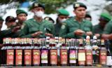 REPUBLIKA.CO.ID, BANDA ACEH -- Sejumlah barang bukti minuman keras (miras) hasil sitaan Satuan Polisi Pamong Praja dan Wilyatul Hisbah (Satpol PP dan WH) Kota Banda Aceh dipersiapkan untuk pemusnahan di Banda Aceh, Aceh, Selasa (27/9/2022). Satuan Polisi Pamong Praja dan Wilyatul Hisbah (Satpol PP dan WH) Kota Banda Aceh memusnahkan puluhan botol barang bukti minuman keras yang disita dari pelanggar peraturan daerah (Qanun) Aceh Nomor 6/2014 tentang Hukum Jinayat.