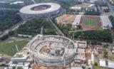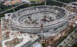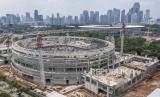 REPUBLIKA.CO.ID, JAKARTA -- Foto udara proyek pembangunan Indoor Multifunction Stadium di Kompleks GBK, Senayan, Jakarta, Selasa (27/9/2022).