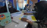 Petugas melayani pemohon pembuatan paspor di Kantor Imigrasi Kelas I Serang, Banten, Selasa (27/9/2022). Permohonan pembuatan paspor di Kantor Imigrasi Serang meningkat sejak dibukanya kembali perjalanan ke luar negeri termasuk ibadah umroh, dari jumlah pembuatan 5.029 paspor pada tahun 2021 menjadi 17.760 paspor pada Januari hingga Agustus 2022.  (FOTO : ANTARA/Asep Fathulrahman)
