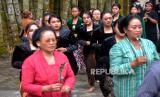 Sinden muda atau baru saat mengikuti acara Temu Sinden di Omah Petruk, Sleman, Yogyakarta, Selasa (27/9/2022). Pada acara ini tempat bertemunya sinden senior dan sinden muda. Sinden senior secara simbolis memberikan tongkat estafet regenerasi kepada sinden muda atau baru dengan tanda wayang kecil. Sebanyak 18 sinden baru dan tiga sinden senior mengikuti temu sinden ini. (FOTO : Republika/Wihdan Hidayat)
