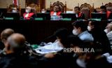 Ketua Majelis Hakim Liliek Prisbawono Adi (tengah) bersama hakim anggota lainnya saat memimpin sidang lanjutan di Pengadilan Negeri (PN) Tipikor, Jakarta Pusat, Kamis (29/9/2022). Sidang tersebut beragendakan pemeriksaan saksi terkait kasus dugaan tindak pidana korupsi perizinan persetujuan ekspor (PE) minyak sawit mentah atau crude palm oil (CPO) dengan terdakwa mantan Direktur Jenderal Perdagangan Luar Negeri Kemendag, Indra Sari Wisnu Wardhana, tim asistensi Menteri Koordinator Bidang Perekonomian, Weibinanto Halimdjati alias Lin Che Wei, Komisaris PT Wilmar Nabati Indonesia, Master Parulian Tumanggor, Senior Manager Corporate Affair PT Victorindo Alam Lestari, Stanley Ma, dan General Manager (GM) Bagian General Affair PT Musim Mas, Pierre Togar Sitanggang. (FOTO : Republika/Thoudy Badai)