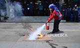 Relawan Damkar (Redkar) melakukan simulasi pemadaman api dengan Alat Pemadam Api Ringan (Apar) saat Launching Gerakan Keluarga Sehat Tanggap dan Tangguh (Gagah) Bencana bertajuk Siaga Kebakaran Lingkungan Kota Bandung di Pendopo Kota Bandung, Kamis (29/9). Dengan adanya program tersebut diharapkan warga khususnya ibu-ibu rumah tangga memiliki pengetahuan dalam hal pencegahan dan penanganan kebakaran, sehingga dapat mengurangi terjadinya kebakaran di Kota Bandung, serta meningkatkan rasa tenang dan aman bagi warga. (FOTO : Edi Yusuf/Republika)