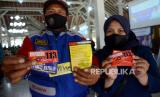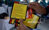 Relawan Damkar (Redkar) memperlihatkan sejumlah stiker berisi edukasi pencegahaan kebakaran saat Launching Gerakan Keluarga Sehat Tanggap dan Tangguh (Gagah) Bencana bertajuk Siaga Kebakaran Lingkungan Kota Bandung di Pendopo Kota Bandung, Kamis (29/9). Dengan adanya program tersebut diharapkan warga khususnya ibu-ibu rumah tangga memiliki pengetahuan dalam hal pencegahan dan penanganan kebakaran, sehingga dapat mengurangi terjadinya kebakaran di Kota Bandung, serta meningkatkan rasa tenang dan aman bagi warga. (FOTO : Edi Yusuf/Republika)
