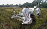 REPUBLIKA.CO.ID,BOGOR -- Petani menggunakan mesin panen padi di area persawahan Kelurahan Situ Gede, Kota Bogor, Jawa Barat, Kamis (29/9/2022). Mesin panen padi yang merupakan bantuan pemerintah pusat tersebut mulai digunakan petani setempat untuk mempermudah dan mempercepat proses panen padi.