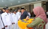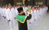 REPUBLIKA.CO.ID, ACEH BARAT -- Para Kepala Desa terpilih mengucapkan sumpah jabatan saat proses pelantikan kepala desa serentak di Aula Bappeda Kabupaten Aceh Barat, Aceh, Kamis (29/9/2022). Pemerintah Kabupaten Aceh Barat melantik 290 kepala desa terpilih dari 12 kecamatan periode 2022-2028 hasil pemilihan serentak yang berlangsung pada 11 September lalu.