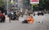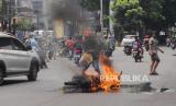 Sepeda Motor Terbakar di Tengah Jalan Akibat Arus Pendek