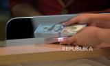 Petugas menghitung uang dolar AS di salah satu gerai penukaran mata uang asing di Jakarta, Kamis (29/9/2022). Nilai tukar rupiah terhadap dolar Amerika Serikat (AS) ditutup menguat pada penutupan perdagangan Kamis (29/9/2022) sebesar 4 poin atau 0,03 persen ke level Rp15.262,50 per dolar AS. Prayogi/Republika. (FOTO : Prayogi/Republika.)