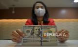 Karyawan menunjukan uang dolar AS di salah satu gerai penukaran mata uang asing di Jakarta, Kamis (29/9/2022). Nilai tukar rupiah terhadap dolar Amerika Serikat (AS) ditutup menguat pada penutupan perdagangan Kamis (29/9/2022) sebesar 4 poin atau 0,03 persen ke level Rp15.262,50 per dolar AS. Prayogi/Republika. (FOTO : Prayogi/Republika.)