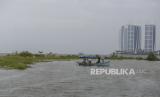 Nelayan beraktivitas di kawasan Pulau G di perairan Teluk Jakarta, Jakarta, Jumat (30/9/2022). Gubernur DKI Jakarta Anies Baswedan menetapkan pulau hasil reklamasi yaitu Pulau G menjadi kawasan pemukiman yang nantinya dapat ditempati warga Jakarta. Penetapan tersebut berdasarkan Peraturan Gubernur (Pergub) Nomor 31 Tahun 2022 tentang Rencana Detail Tata Ruang (RDTR) Wilayah Perencanaan DKI Jakarta. Republika/Putra M. Akbar (FOTO : Republika/Putra M. Akbar)