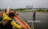 Nelayan beraktivitas di kawasan Pulau G di perairan Teluk Jakarta, Jakarta, Jumat (30/9/2022). Gubernur DKI Jakarta Anies Baswedan menetapkan pulau hasil reklamasi yaitu Pulau G menjadi kawasan pemukiman yang nantinya dapat ditempati warga Jakarta. Penetapan tersebut berdasarkan Peraturan Gubernur (Pergub) Nomor 31 Tahun 2022 tentang Rencana Detail Tata Ruang (RDTR) Wilayah Perencanaan DKI Jakarta. (FOTO : Republika/Putra M. Akbar)