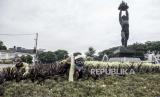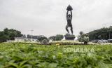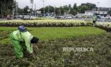REPUBLIKA.CO.ID,JAKARTA -- Petugas Dinas Pertamanan dan Pemakaman DKI Jakarta melakukan perawatan taman kota di Bundaran Patung Pemuda Membangun, Jakarta, Jumat (30/9/2022).